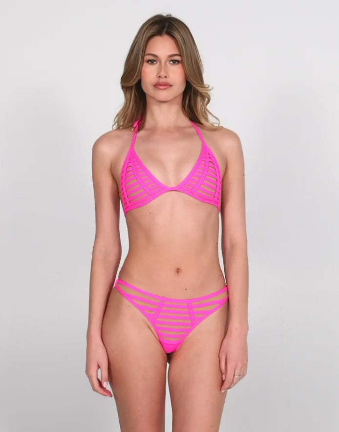 Beach Bunny's bestselling Hard Summer Tango features a swimwear binding design overlaid on nude fabric, creating a bold and stylish look. Perfectly paired with the Hard Summer Triangle, this bottom is a must-have for a statement-making beach ensemble.