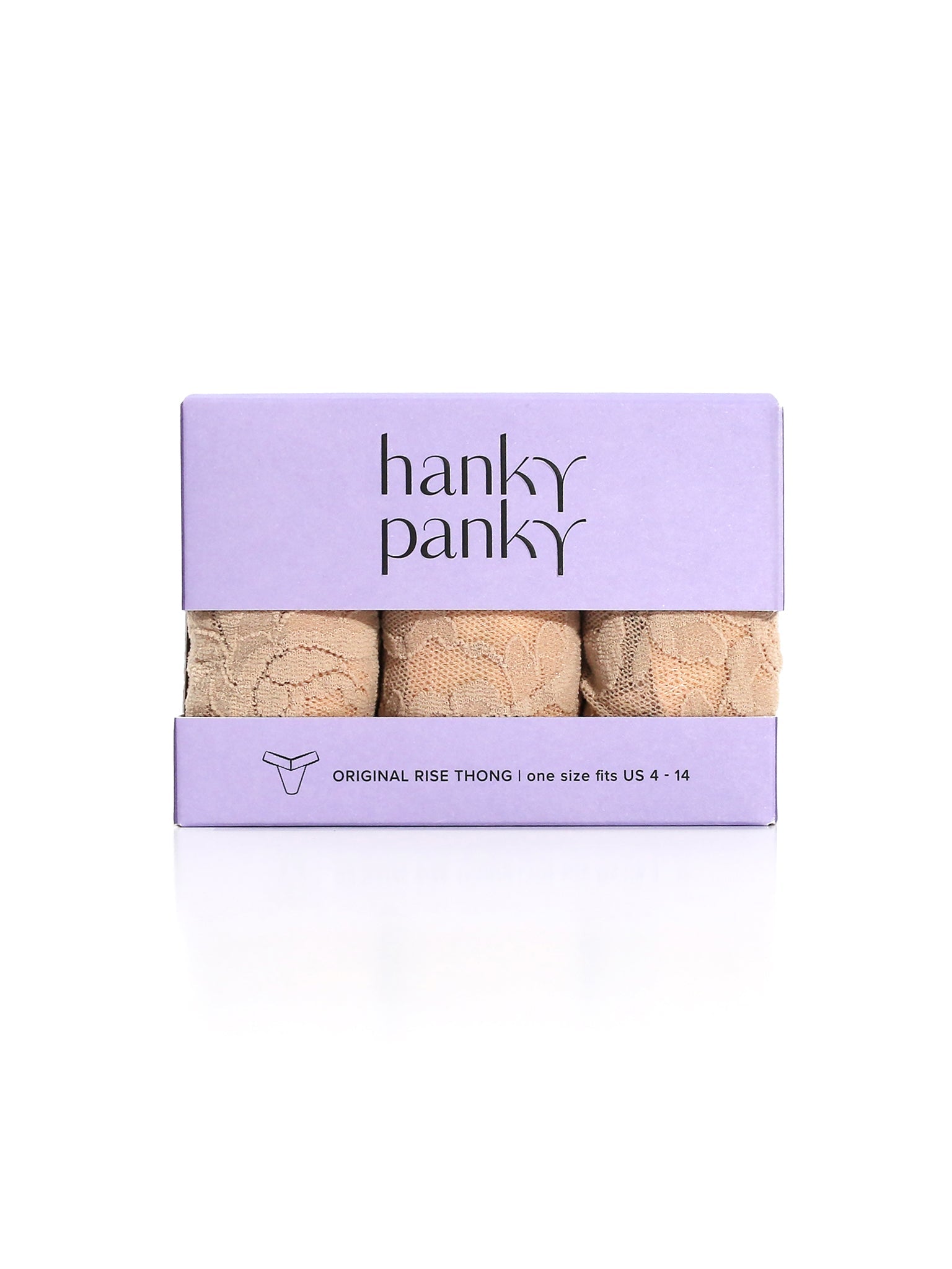 In an assortment of classic hues, this pack of original rise lace thongs offers all day comfort. Ready to go in a gift box!