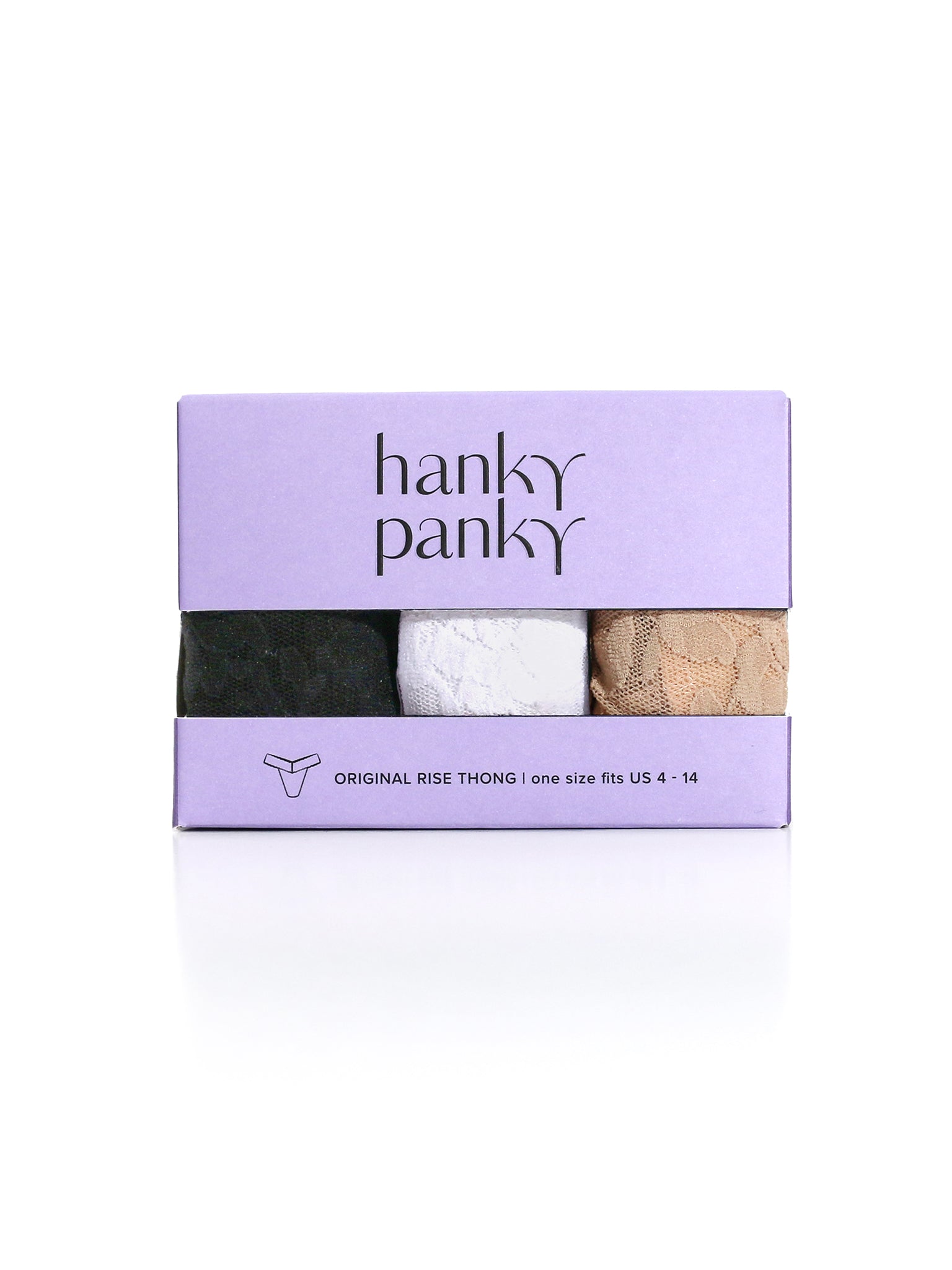 In an assortment of classic hues, this pack of original rise lace thongs offers all day comfort. Ready to go in a gift box!