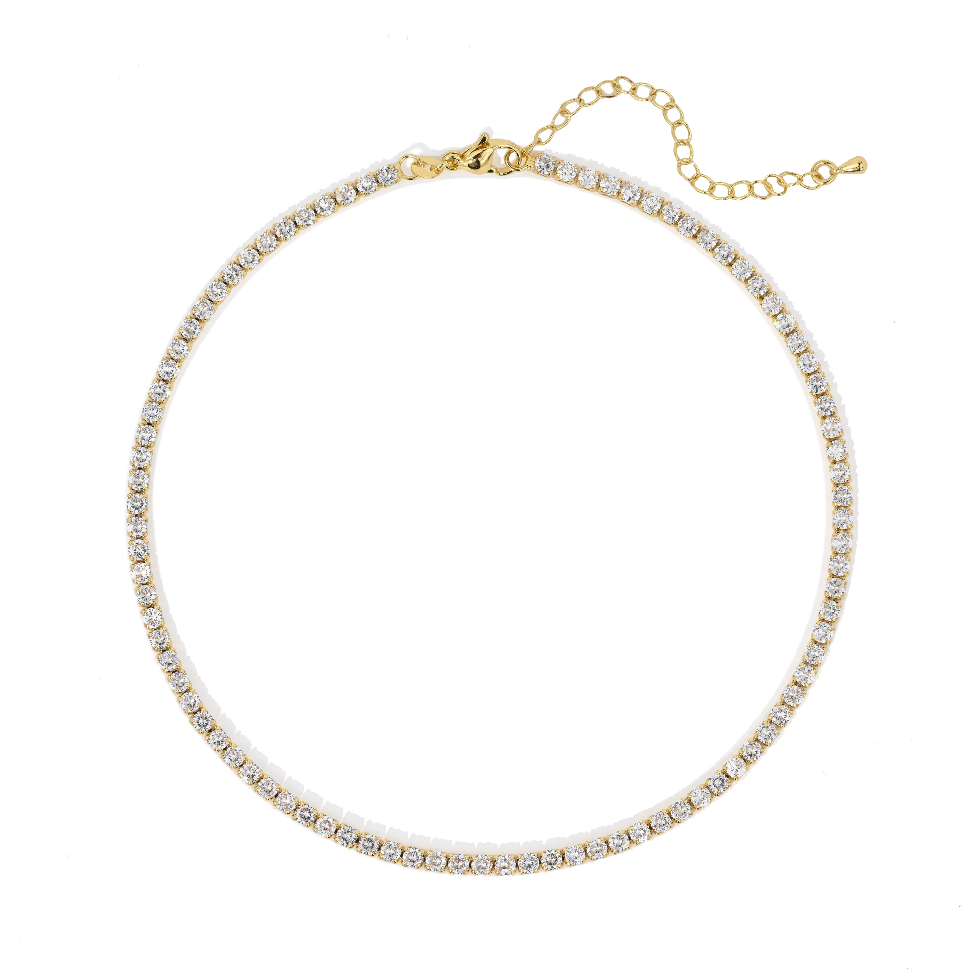 Sleek and bold, the Chloe Tennis Choker elevates your athletic look while adding a touch of elegance. Made with high-quality materials, this choker provides a comfortable fit and durability for your active lifestyle. Enhance your appearance and performance on and off the court with this stylish accessory.
