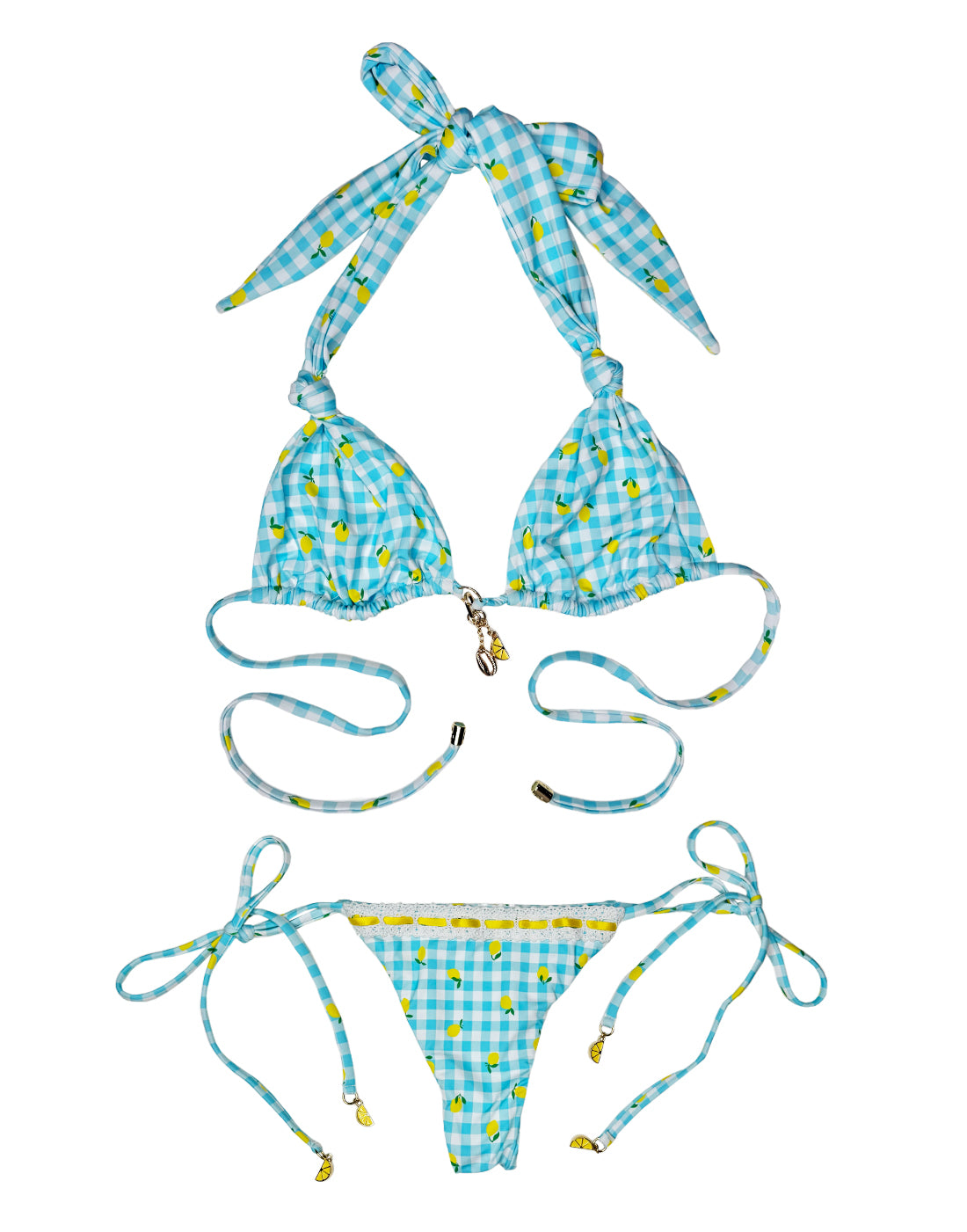 Say hello to your new favorite tiny bikini moment – the Limoncello Spritz Thong Bottom by Beach Bunny Swimwear brings playful charm with a bold twist. Featuring a flirty blue gingham print sprinkled with yellow lemon embroidery, this thong-style bottom delivers minimal coverage with adjustable side ties for the perfect, barely-there fit. Designed for sun-drenched days and sultry summer nights, this cheeky thong pairs perfectly with the Limoncello Spritz Bandeau Top for a head-turning, mix-and-match vibe that’s made for pool parties, yacht days, and resort escapes.